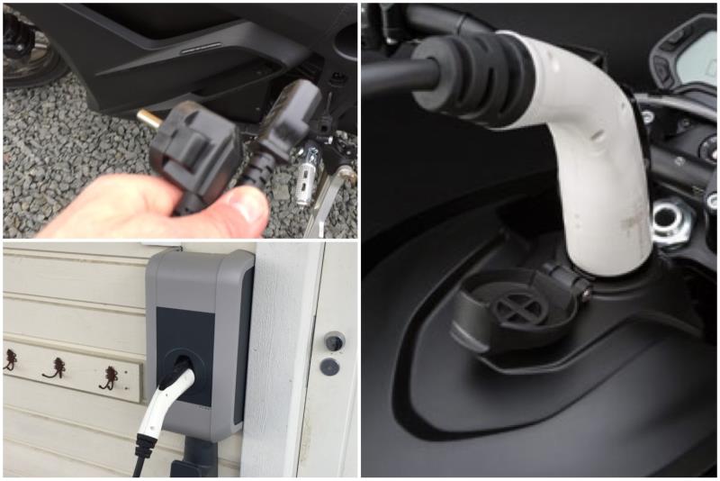 Pyörän mukana tulee latausjohto, joka sähköautoihin tottuneelle näytti lähinnä tietokoneen virtapiuhalta. Moottoripyöräkäytössä on hyvä että latauskaapelit eivät vie kovin paljoa tilaa, mutta tuolla vakiojohdolla luvataan akun latautuvan 95% täyteen 6,3 tunnissa, ja siitä viimeinen 5% vie vielä puoli tuntia lisää.