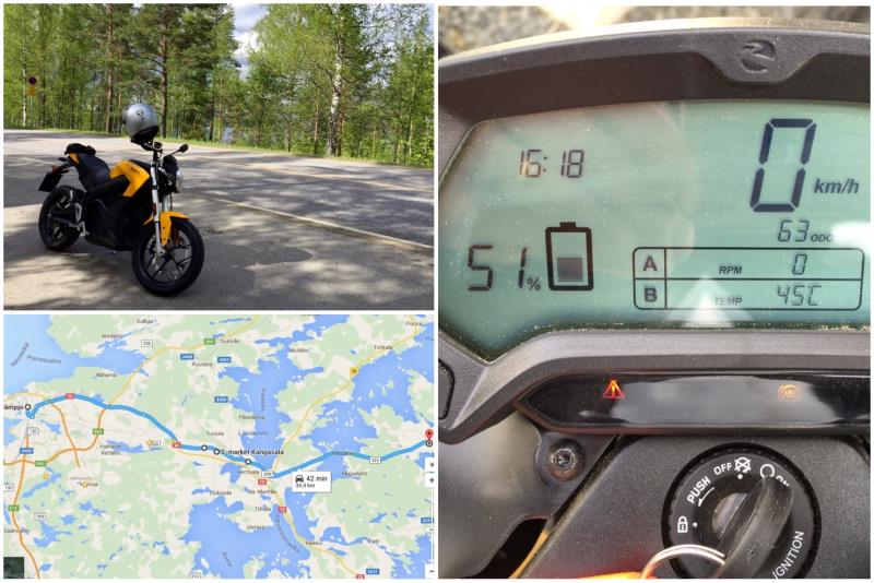 Tuo lyhyt maantieajo-osuus näytti jo sen, että Zerolla pystyy hyvin vaivatta ajamaan lyhyitä maantiesiirtymiä oikein mukavasti. Moottorin voimavarat riittävät erinomaisesti kaikissa tilanteissa laittomiiinkin nopeuksiin, jos sille jollain joku pakottava tarve on. Minulla ei ole.