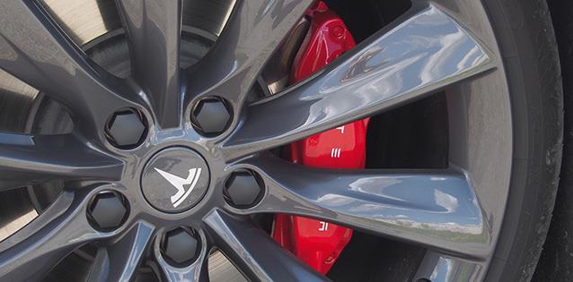 Jotain perinteistäkin autosta löytyy: punainen jarrusatula herättää huomiota vanteen takana