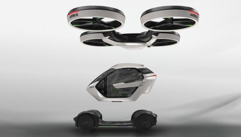 Quadcopterilla lennetään, pyörillä ajetaan, podissa istutaan. Se on Airbus Pop.Up! KUVA: Airbus Group
