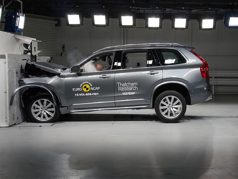 Volvo XC90 EuroNCAP-törmäystestissä vuonna 2015. Volvo ei tiettävästi ole käyttänyt ongelmaisen Takatan valmistamia tyynyjä. KUVA: EuroNCAP
