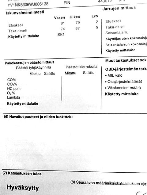 Istuin tuijottaen tyhjyyteen odottaessani tuomiota. Sihteeri sulki toimiston ja kahvitarjoilukin oli lopetettu siltä päivältä. Näin kuinka katsastaja meni autooni, testasi äänimerkin, suihkutteli tuulilasin nestettä ja ajeli nurkan taakse. Tovin päästä Volvo palasi. Menin vastaan katsastajaa. Ainoana kommenttina oli, että ei siinä mitään. Tulos: hyväksytty. Havaitut puutteet loisti tyhjyyttään. En ollut uskoa silmiäni. Tämä oli elämäni ensimmäinen kerta, kun katsastuksessa ei ollut mitään huomautettavaa. Volvon räplääminen ei ollutkaan turhaa tai ainakaan en ollut onnistunut rikkomaan autoa.