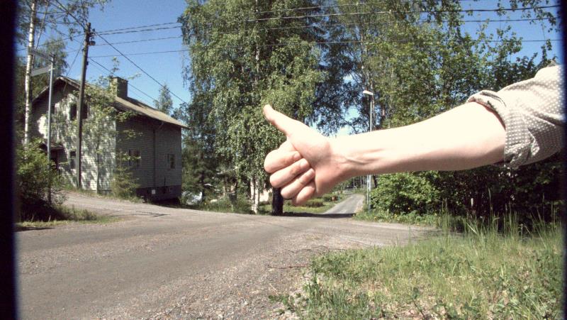 Nyt tienlaidassa oli nuori mies bussipysäkillä hiukan epätoivoinen ilme kasvoillaan heiluttelemassa peukaloa. Miehen päällä oli selvästi kirpputoreilta koottu sekalainen vaatekerta ja leuassa huolimaton parta. En voinut erehtyä pystyssä sojottavan peukalon merkityksestä. Tämä oli hetkeni ja vuosien haaveilun täyttymys. Otin hänet ilolla kyytiin.