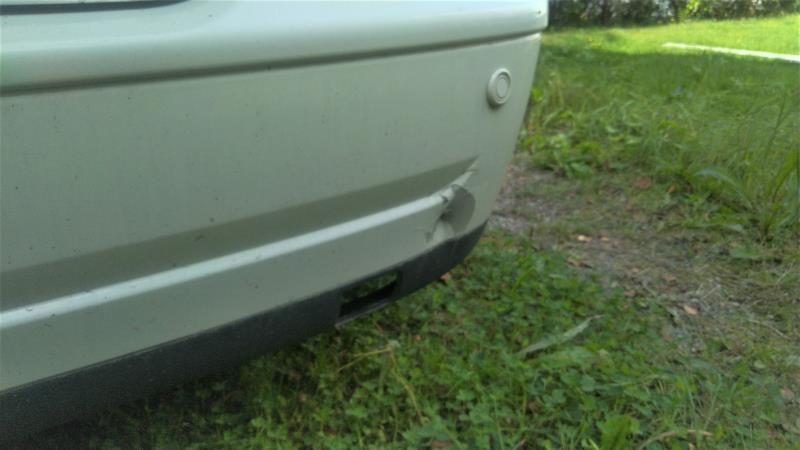 Puskurin tarkoitus on ottaa vastaan osumia ja suojata autoa. Tämä on puskurin tehtävä. Kuvassa näkyvä painauma on kuitenkin niin herttaisesti aivan peruutustutkan anturin vieressä, että kokonaisuus tuo joka kerta hymyn huulille. Peruutustutka ei tietenkään estä muita osumasta takapuskuriin. Jos joku muu olisi painauman aiheuttanut, niin eikö vakuutusyhtiön piikkiin olisi saanut puskurin korjautettua?